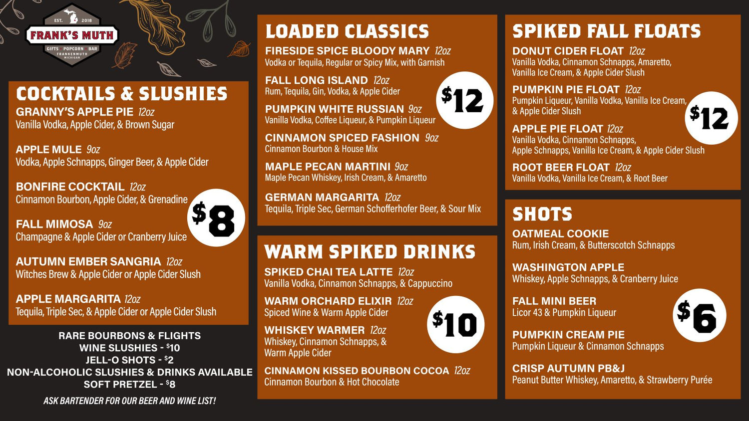 Our bar menu rotates seasonally, so be sure to check what’s brewing this month!